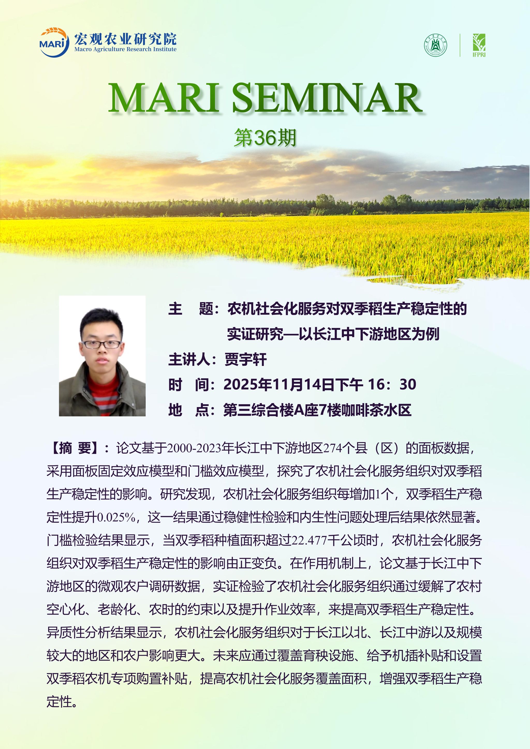 [seminar]农机社会化服务对双季稻生产稳定性的实证研究—以长江中下游地区为例